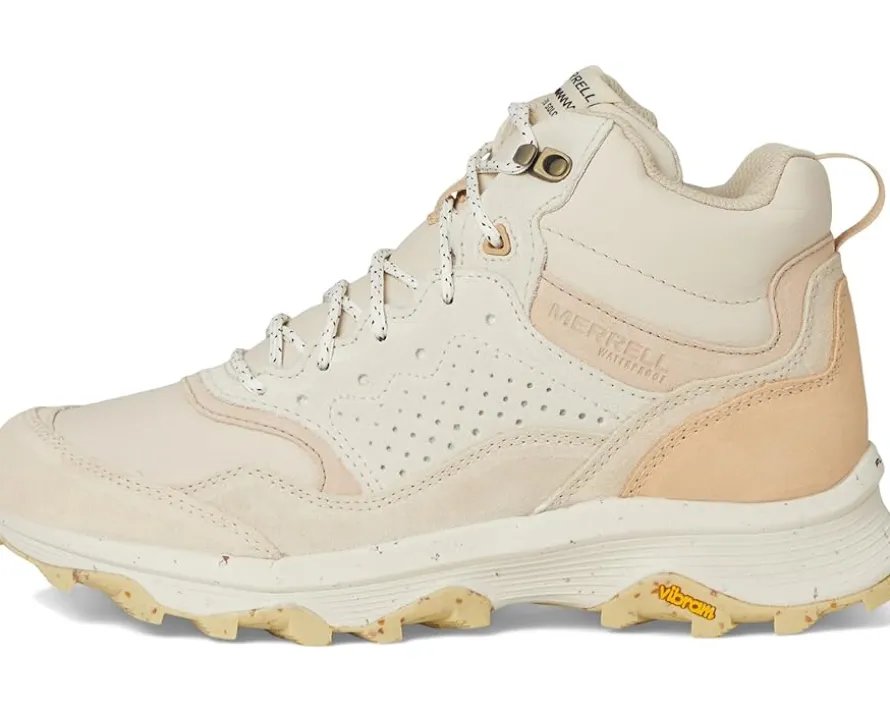 - The Merrell® Speed Solo Mxd Mid Waterproof shoes feature a waterproof membrane to keep your feet dry while allowing moisture to escape, ensuring comfort during wet conditions. The durable leather and mesh upper provide both support and breathability, while the Vibram® outsole offers excellent grip on various terrains.