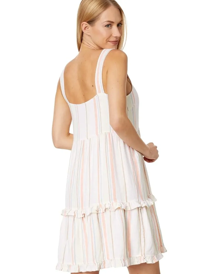 - Keep your style game fresh and fabulous by donning the gorgeous bobi™ Los Angeles Square Neck Tiered Short Dress.