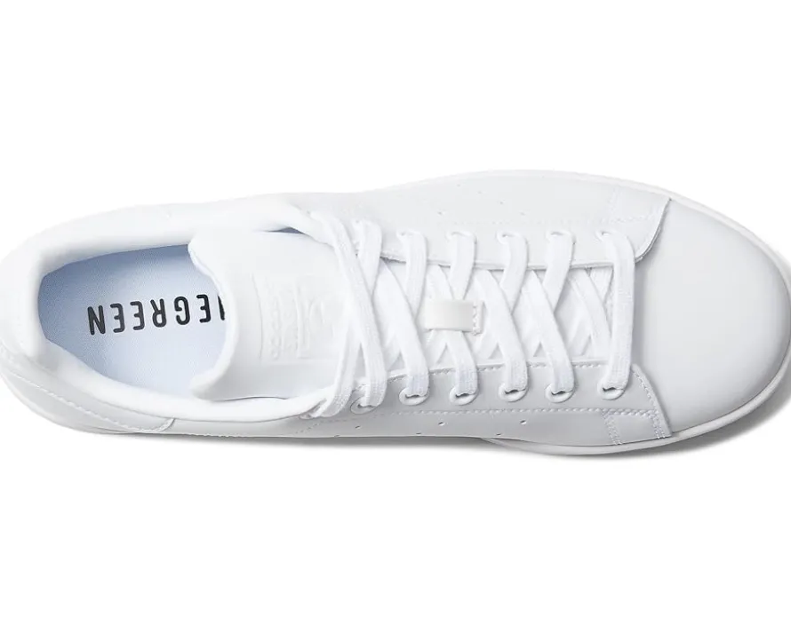 - Timeless appeal. Effortless style. Everyday versatility. For over 50 years and counting, adidas Stan Smith Shoes have continued to hold their place as an icon. This pair shows off a fresh redesign as part of adidas’ commitment to use only recycled polyester by 2024. With a vegan upper and an outsole made from rubber waste, they still have iconic style, they’re just made with the planet in mind. This product is made with vegan alternatives to animal-derived ingredients or materials. It is also made with Primegreen, a series of high-performance recycled materials. 50% of upper is recycled content. No virgin polyester.