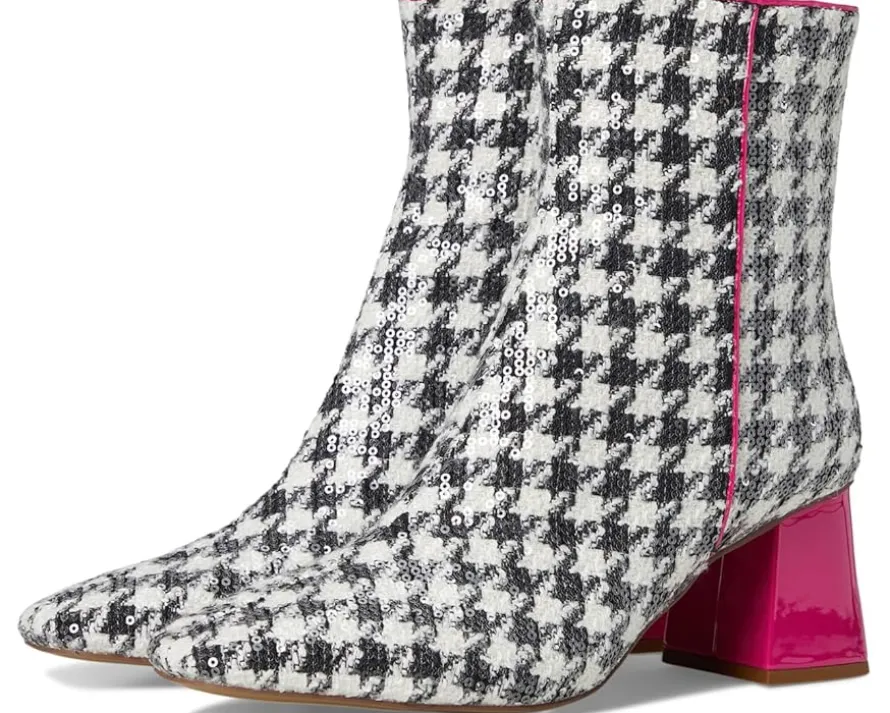 - The Blue™ by Betsey Johnson Stevie booties will take any outfit you wear to the next level. These ankle-high boots feature a square toe shape and block heels. They are made of a polyester upper, polyurethane insole, and PVC lining. The zippered side closure offers easy on and off. Styled with an allover sequin detail, these heeled boots add an eye-catching twist to your outfits.
