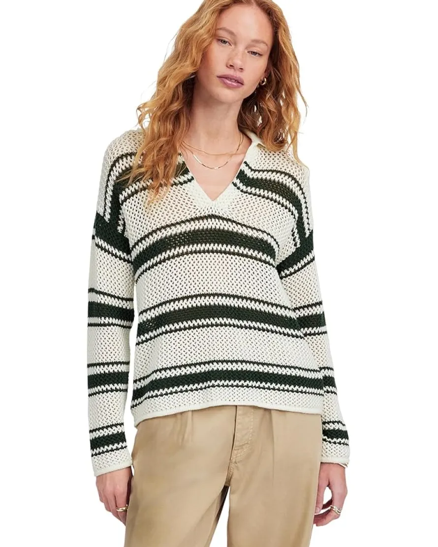 - The Madewell® Stripe Madeleine Open Stitch Long Sleeve Polo boasts an open-stitch design, offering a unique texture and a lightweight feel. The long sleeves and classic polo collar add a touch of sophistication, while the striped pattern brings a modern flair.