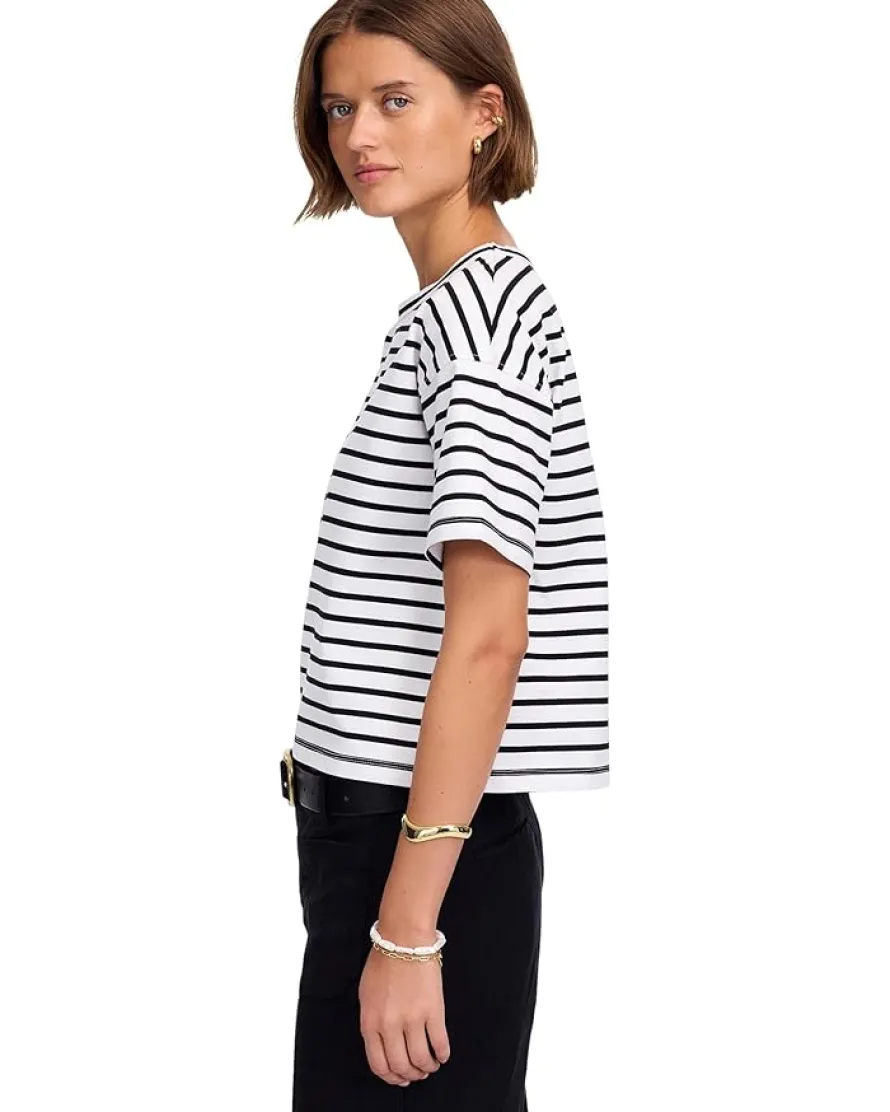 - The Madewell® Structured Boxy Tee Stripe is designed with a boxy, cropped fit and features a crew neckline, drop shoulder, and short sleeves.
