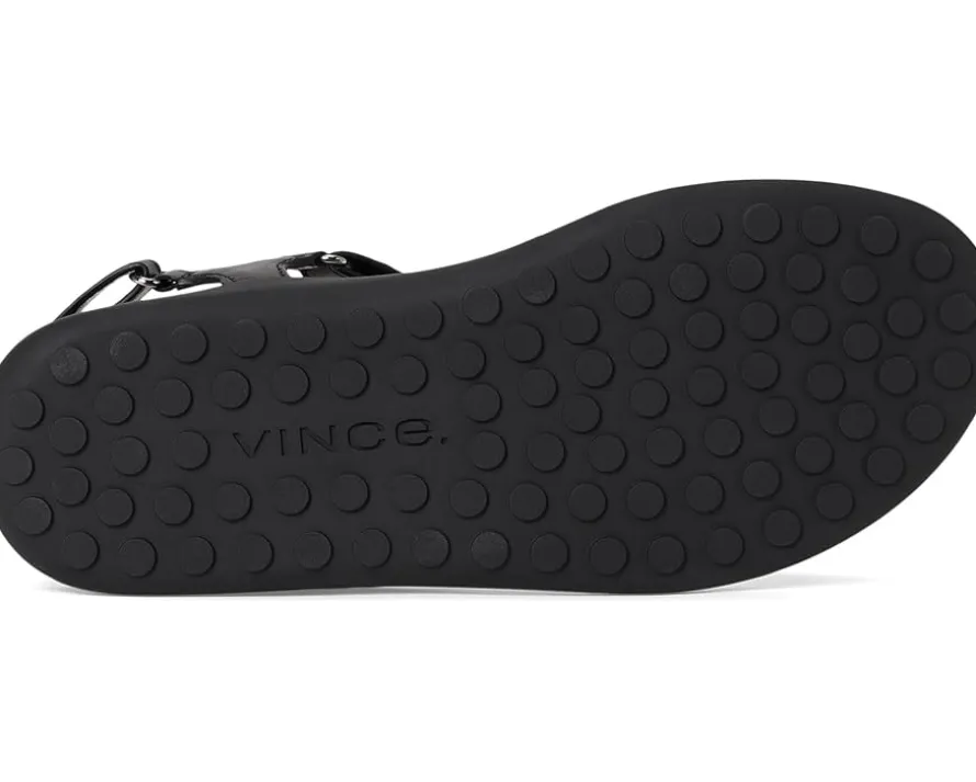 - The Vince® Summer Strappy Sandals combine stylish aesthetics and impeccable comfort. The open round-toe sandals are crafted with a leather & fabric upper with a chic toe loop, fabric lining responsibly sourced from Leather Working Group certified tanneries material, and a foam insole. The double hook-and-loop closure is designed for a secure fit.