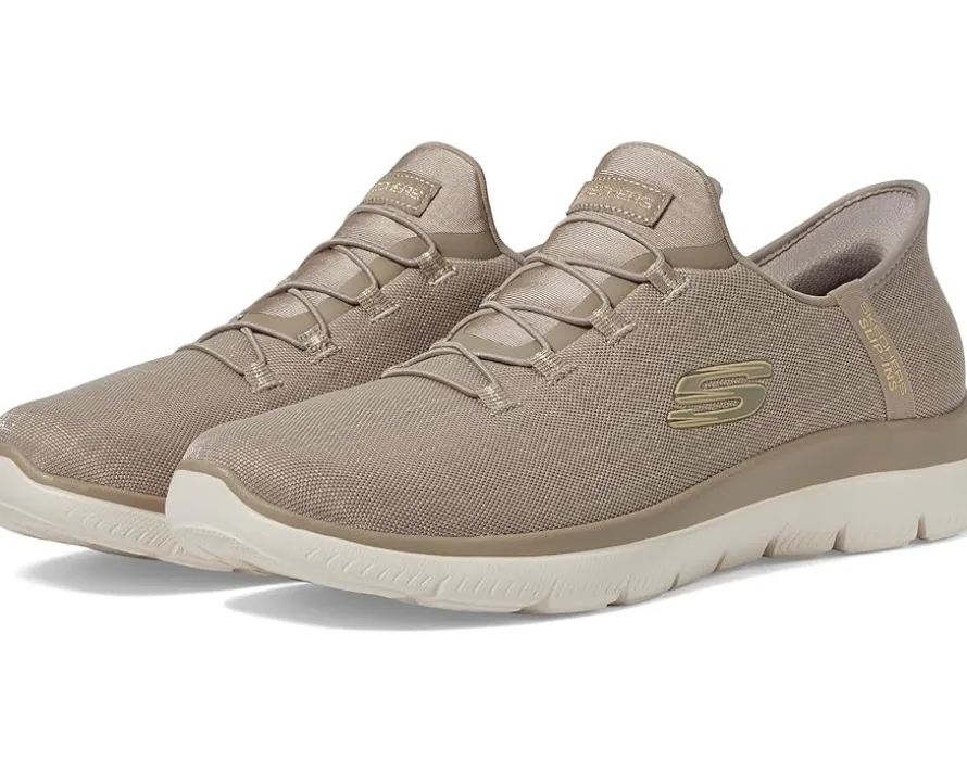 - Add a little glam to your step wearing the SKECHERS® Summits-Classy Night Hands Free Slip-Ins. Designed with an exclusive Heel Pillow, these shoes feature a snake-patterned sparkle mesh upper with fixed stretch laces that make them a comfortable footwear choice. The cushioned Skechers Air-Cooled Memory Foam® comfort insole cushions each of your steps. Machine washable, these lace-up sneakers are perfect to pair with different styles and outfits.