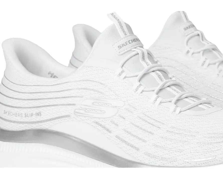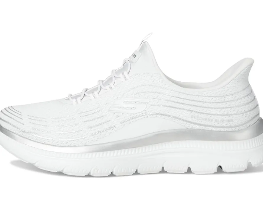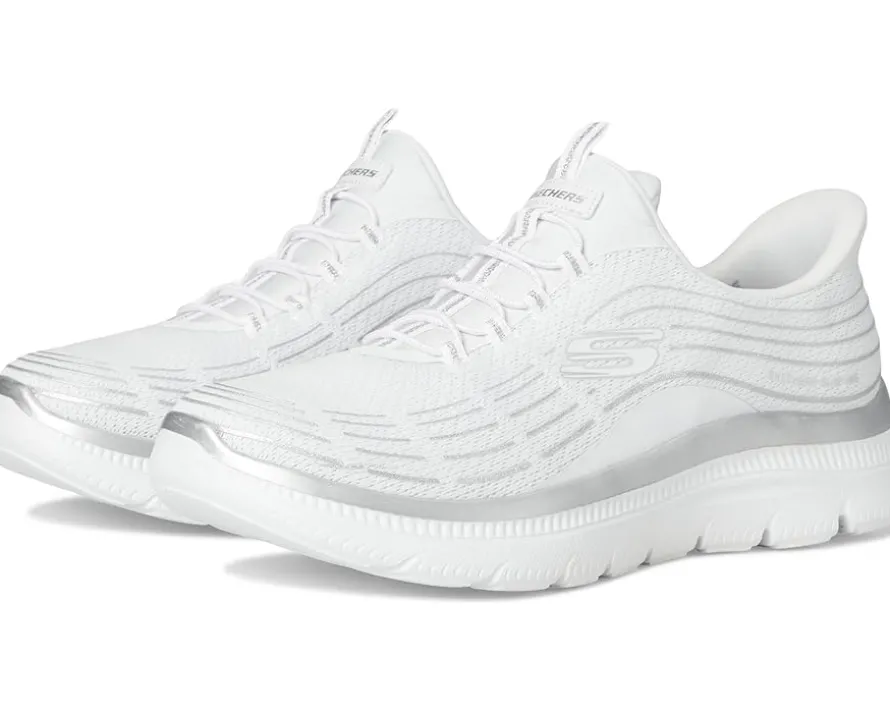- The SKECHERS® Summits Plus Hands Free Slip-INS provide all-day comfort and style, thanks to the Skechers Air-Cooled Memory Foam® cushioned comfort insole and lightweight, flexible shock-absorbing midsole. Featuring breathable mesh upper with an ombré 3D print and a stretchable lace front, these sneakers offer both style and functionality. The Exclusive Heel Pillow™ keeps your foot securely in place while the Skechers Hands Free Slip-ins® provide an easy fit.