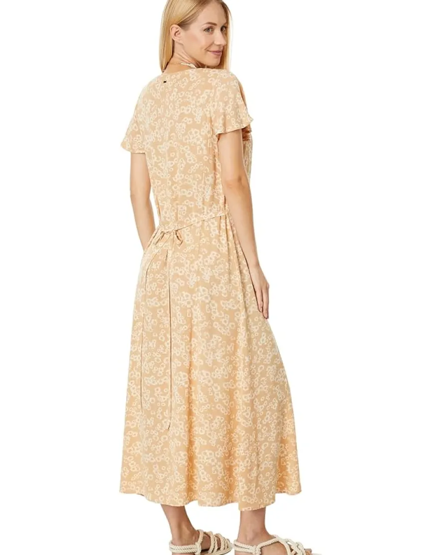 - Get a vintage classic and aesthetic look for your next casual meetup wearing the Rip Curl™ Sunrise Session Ditsy Midi Dress. The dress features a V-neckline and short ruffled sleeves. There is also a drawstring closure at the back.