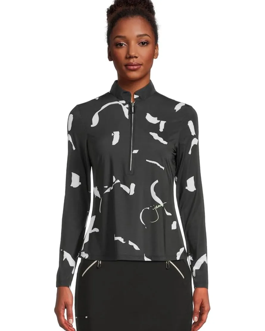 - The Jamie Sadock® Sunsense Andalouse Print Long Sleeve 1/4 Zip Sun Protection Top is a literal work of art designed, refined, and produced with the intention of being nothing like anything else on the market. Classic silhouettes infused with distinct details that set you a cut above others. Featuring mandarin collar neckline with zippered placket, long sleeves, and allover unique design.