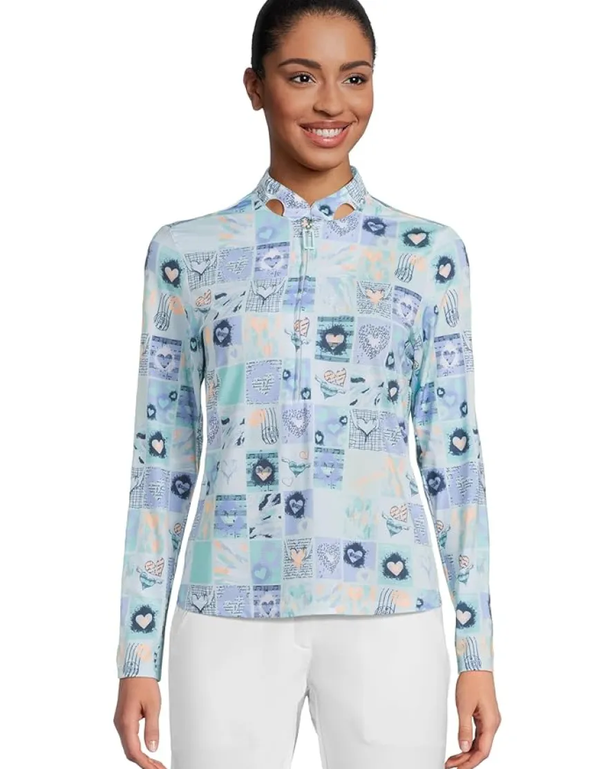 - Step outdoors in style and full sun protection wearing Jamie Sadock® Sunsense Hearts Print Long Sleeve 1/4 Zip Sun Protection Top. Crafted with Proprietary Microdenier Sunsense Fabric offering SP50+ protection and aeration, ventilation system under the forearm, this pull-on style top keeps you cool while you are active. It features a mock neck with a quarter-zipper closure, long sleeves, and all-over printed details.