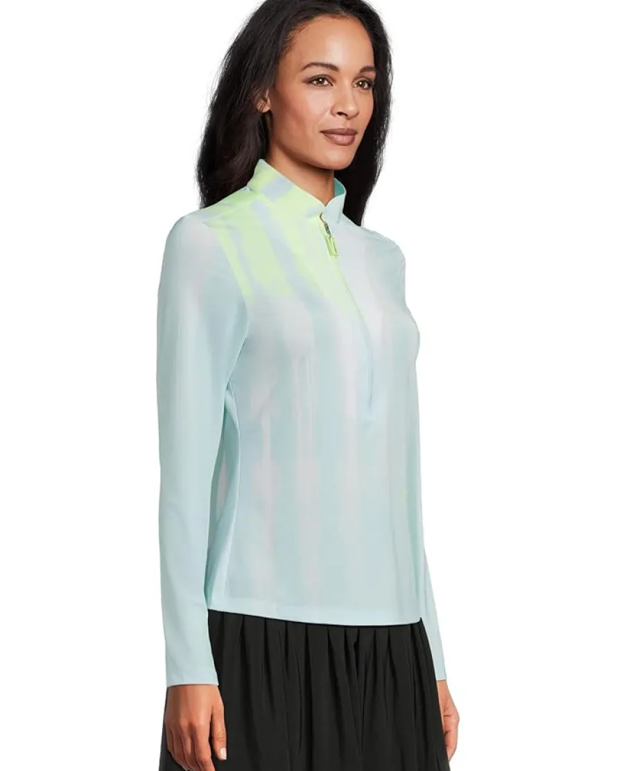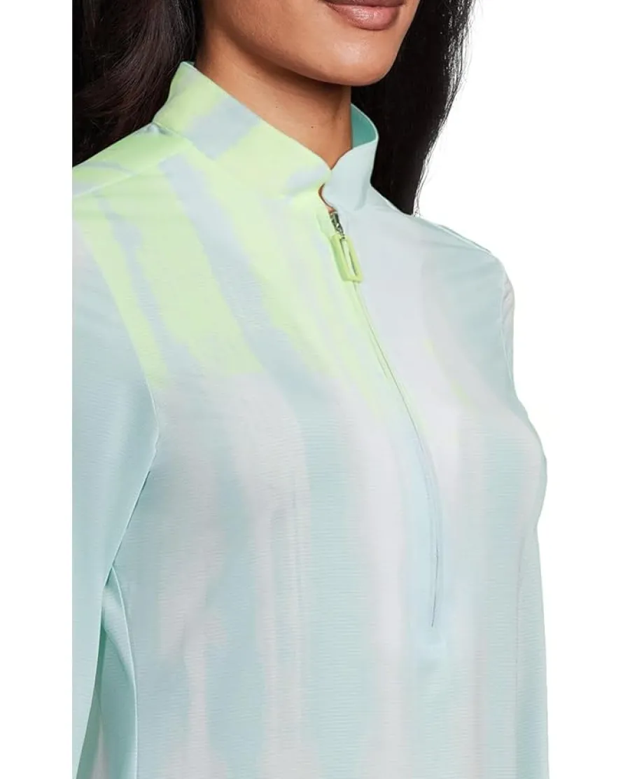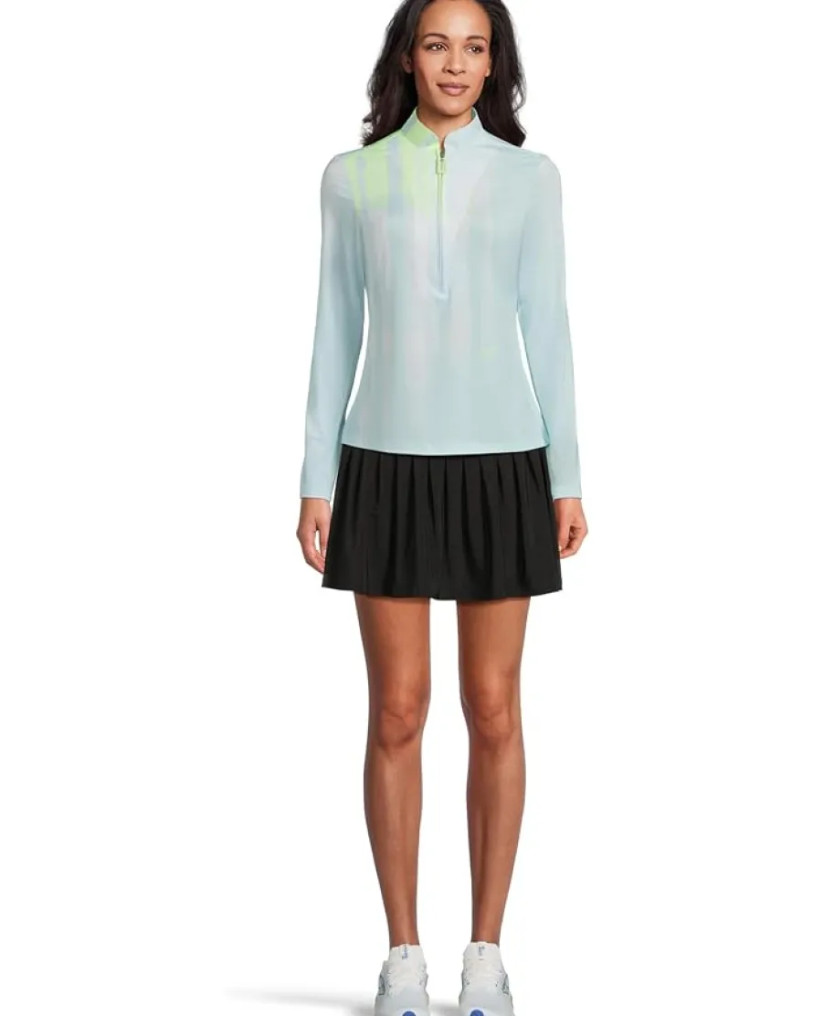 - Pull it on, stand out, and own your game: The Jamie Sadock® Sunsense Kinetic Print Long Sleeve 1/4 Zip Sun Protection Top-where performance meets high fashion. Crafted with proprietary Microdenier Sunsense Fabric, this top delivers SPF 50+ protection, shielding you from the sun while keeping you effortlessly stylish. The ultra-lightweight, stretch performance fabric moves with you, while the ventilation system under the forearms enhances airflow, ensuring you stay fresh even in the heat. Designed to feel cool to the touch, this top is a literal work of art, blending classic silhouettes with eye-catching details.