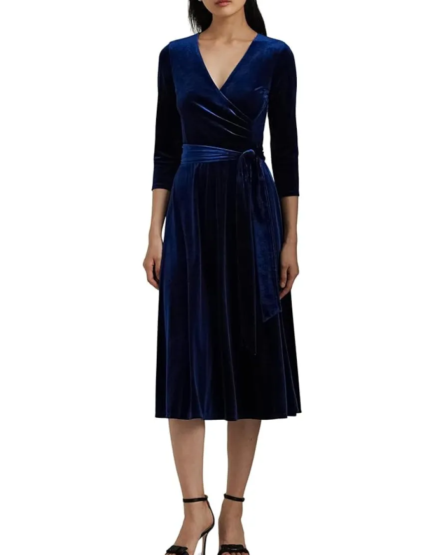 - Be ready for any occasion in elegant style in the LAUREN Ralph Lauren® Surplice Velvet Dress. Featuring a surplice neckline, three-quarter sleeves, front bodice princess seams, and an A-line silhouette.
