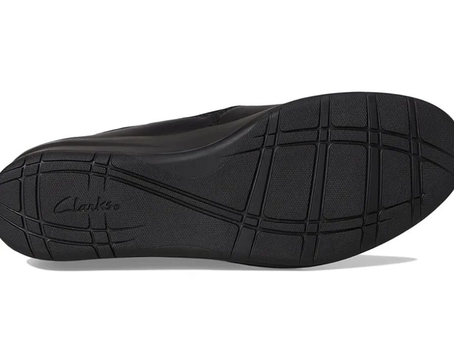 - Perfect for all events, the Clarks™ Suttyn Walk Shoes add both style and comfort to your feet. These slip-on style shoes feature a leather upper with a plain toe shape, mesh lining, and a cushioned leather insole. The wedge heel detail adds style to the look.
