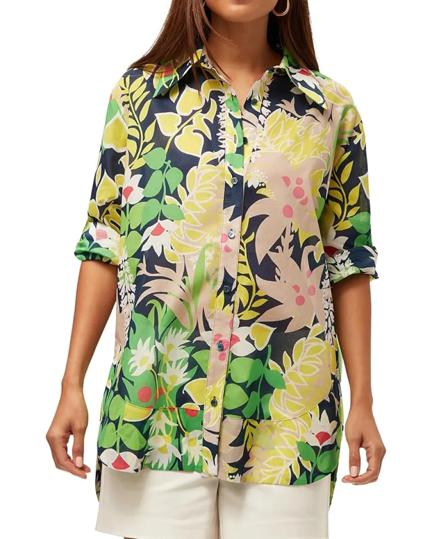 - Swing into effortless elegance wearing the Trina Turk™ Swing Top! Featuring a classic button-down design with a crisp collar neckline, this top pairs timeless sophistication with modern ease. The elbow-length cuffed sleeves add a polished touch, while the flattering shirttail hem ensures a chic silhouette. Designed in a regular fit, it’s perfect for everything from workdays to weekend brunches.