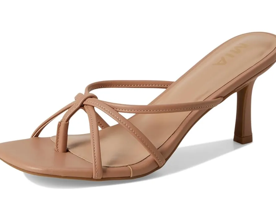 - Wherever you go, Sybel from MIA™ brings the vibe. Crafted with a luxe leather upper and lined with soft faux leather, these vegan-friendly beauties are perfect for trendsetters who don’t compromise on values. The X-strap design adds a modern edge, while the slip-on silhouette makes getting ready a breeze. A supportive PU outsole and wedge heel give you a confident lift, making these open-toe heels ideal for everything from rooftop brunches to date-night strolls.