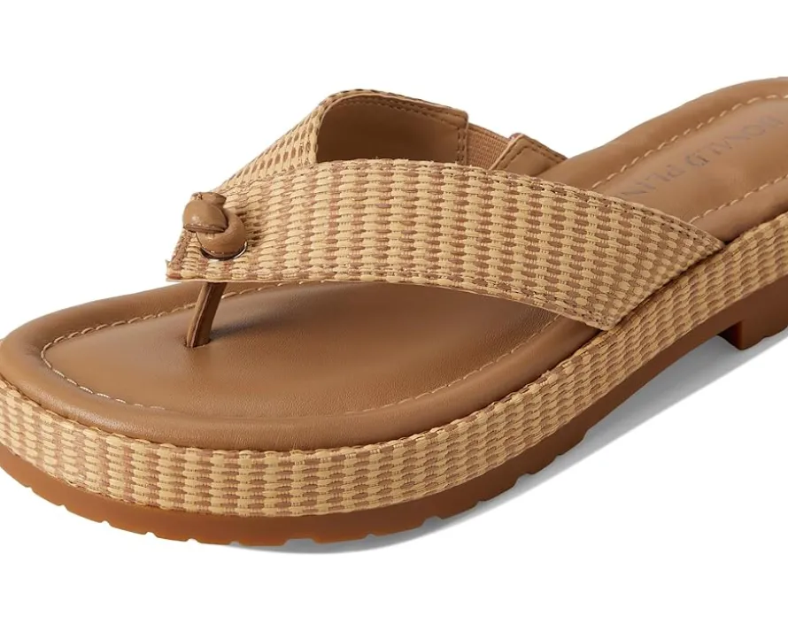 - The Donald Pliner® SYLVER sandal combines a casual vibe with refined details like a knotted toe post and woven raffia upper. A memory foam padded insole ensures all-day comfort, while the rubber lug outsole offers added traction.