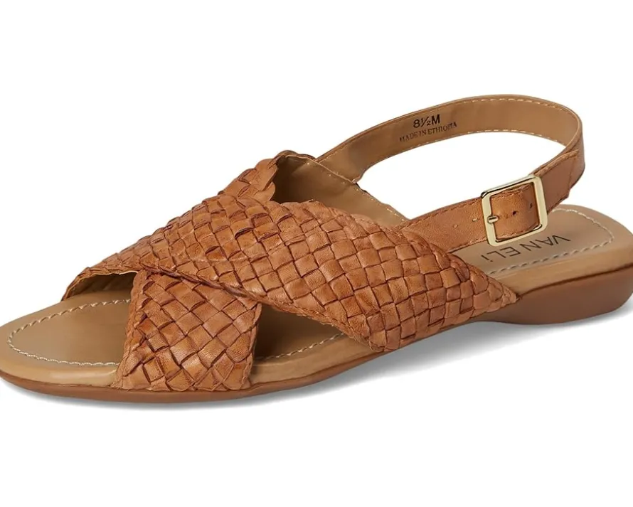 - Featuring a leather braided crisscross strap design, the Vaneli® Tagus flat sandal offers a chic and versatile look. The padded leather insole ensures all-day comfort, while the rubber driving sole provides durability and ease of movement.