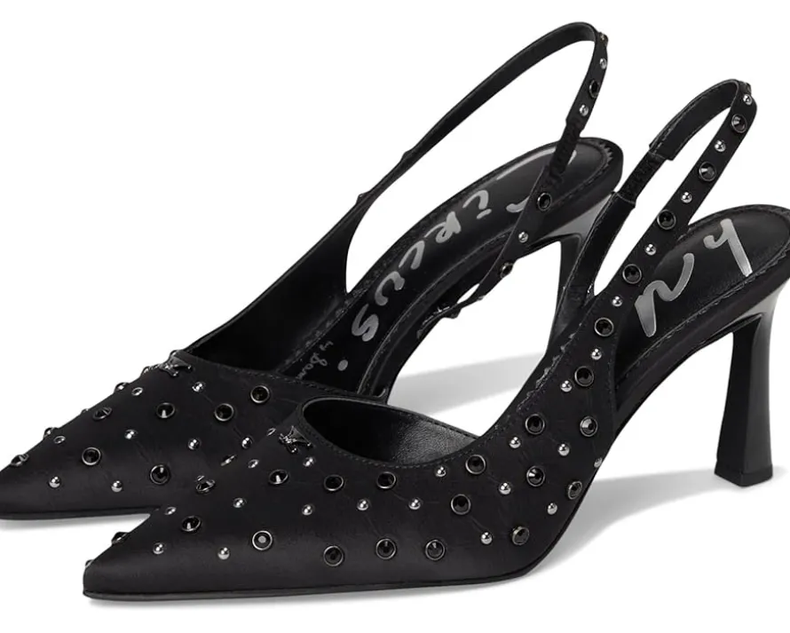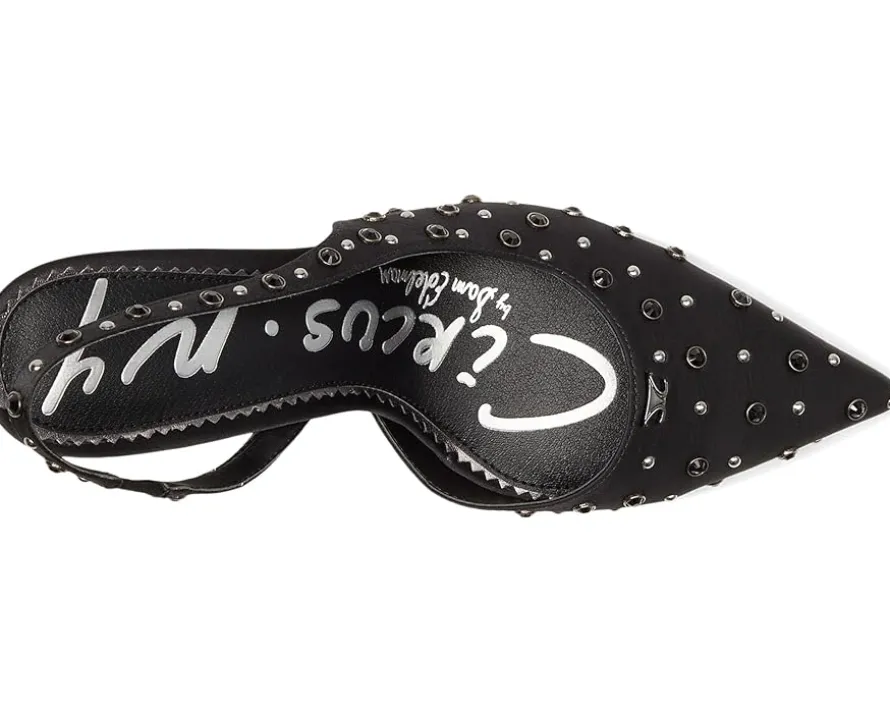 - Meet the Circus NY by Sam Edelman® Tallie Slingback Shoes, where trend meets unapologetic confidence. Crafted with a sleek synthetic resin upper and soft faux leather lining, these heels are as polished as they are comfortable. The cushioned EVA insole pairs with a durable synthetic rubber outsole to give you ease with every stride, while the slip-on design keeps things effortlessly chic. But the real showstopper? A bold stiletto heel that elongates your silhouette and shimmering grommet details that demand attention.