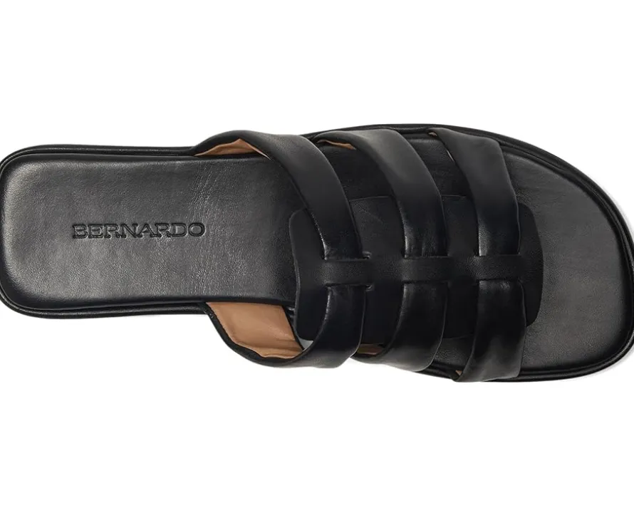 - Reimagine possibilities. The Bernardo® Tamer refined slide sandal evolves an essential silhouette by detailing its cushioned upper with three straps and wrapping its padded sole in soft vegetable re-tanned leather.