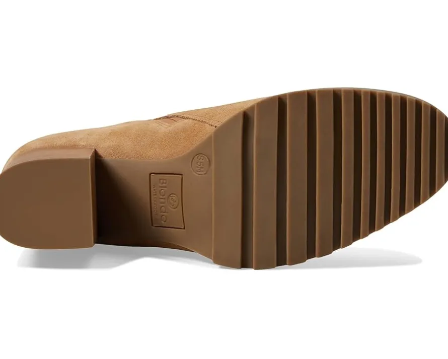 - Get the desired comfort and weather protection while taking your style game to new heights, wearing the Blondo® Tamera Waterproof Boots. Elevated by a sturdy block heel, these almond-toe booties display gleaming goldtone hardware for an eye-catching appeal. They are formed with a waterproof leather and textile upper, a synthetic lining, and a memory foam cushioned footbed for impeccable comfort during walks.