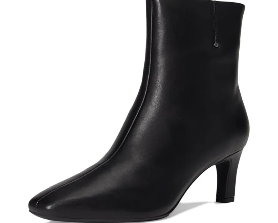 - Move into sleek sophistication styling the Franco Sarto® Tavisha, where modern elegance meets everyday ease. These ankle-high booties are crafted with a luxurious leather and suede upper that exudes refinement, while the pointed toe adds a chic, elongating silhouette perfect for any occasion. The convenient zippered side closure ensures effortless wear, and the petite kitten heel delivers just the right lift without sacrificing comfort. Inside, a cushioned PU insole cradles your feet, while the durable synthetic rubber outsole provides traction for confident strides.