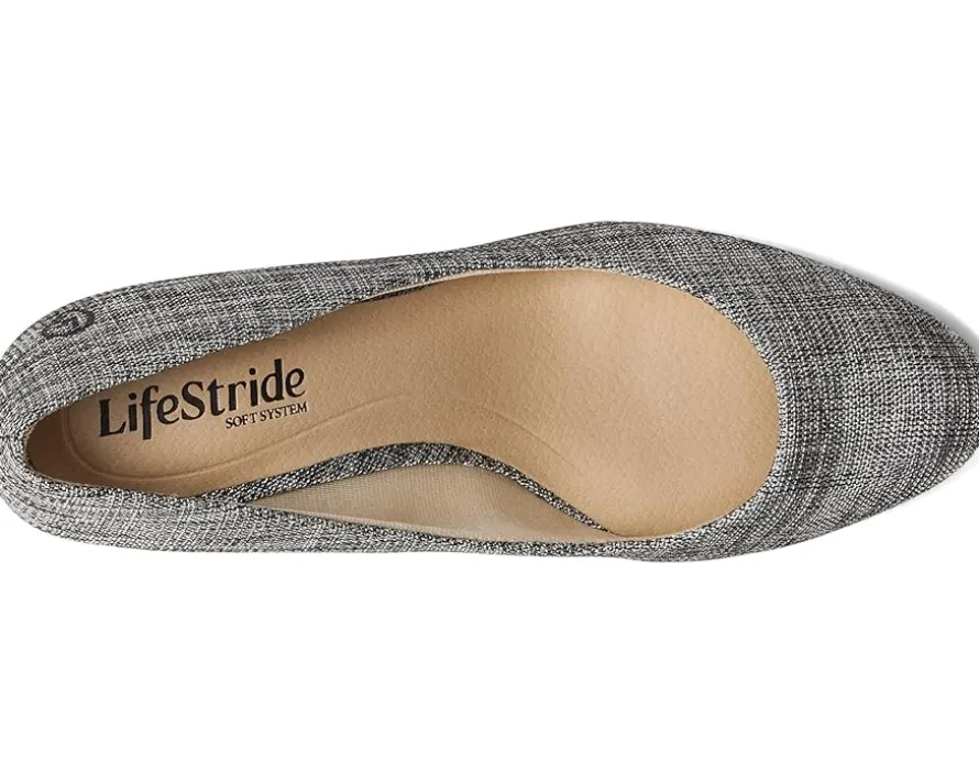 - An essential every day, every season, timeless pumps. These comfortable LifeStride® Taylor Pumps will be your new favorites. They have faux leather or fabric upper, almond toe design, slip-on fit, and cupped heels. The Soft System® comfort package provides all-day support, flex, and cushioning.