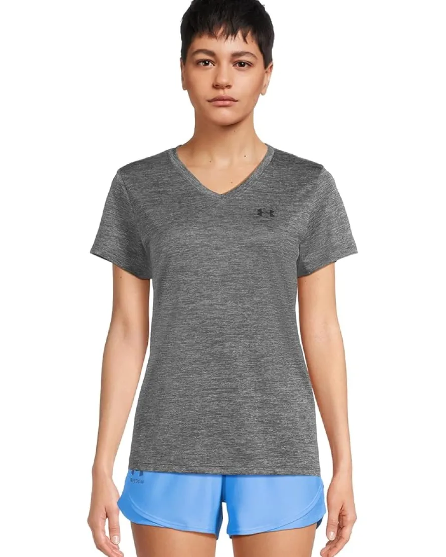 - Crush your goals wearing the game-changing super-comfy Under Armour® Tech Short Sleeve V-Neck Twist tee. This pullover tee features a brand logo detail on the left chest and at the nape. It boasts a tagless design or tear-away tag with no left-over pieces.