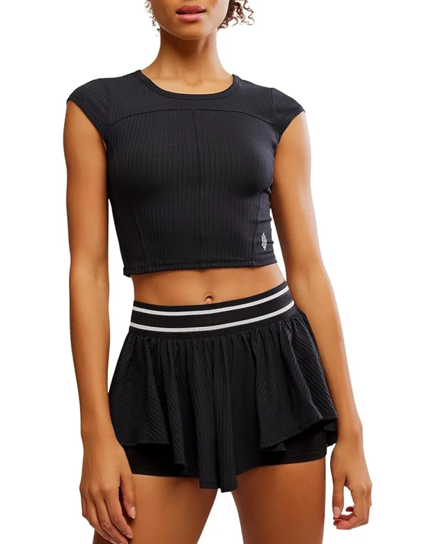 - Flex, flow, and fit in style wearing the FP Movement Tempo Ribbed Baby Tee. Crafted using semi-sheer, breathable, lightweight, sweat-wicking, and hydrophobic fabric designed to keep your body dry during even your sweatiest workouts. Featuring crew neckline, cap sleeves, baby tee silhouette, and exposed stitching detail throughout.