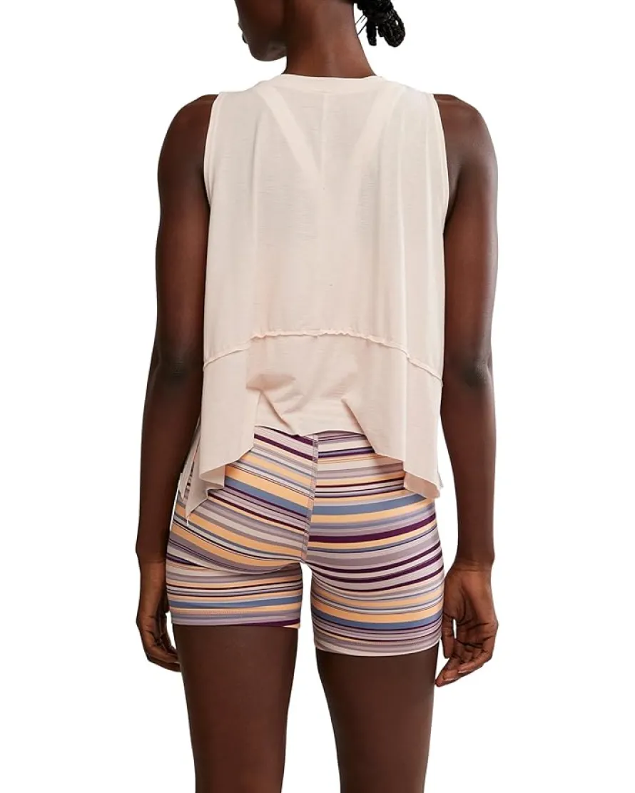- Take on any road in your classic style wearing the FP Movement Tempo Tank. Made from breathable, lightweight, and comfortable fabric, the top features a crew neckline, sleeveless design, raw seam detailing, and high-low hem with side vents.