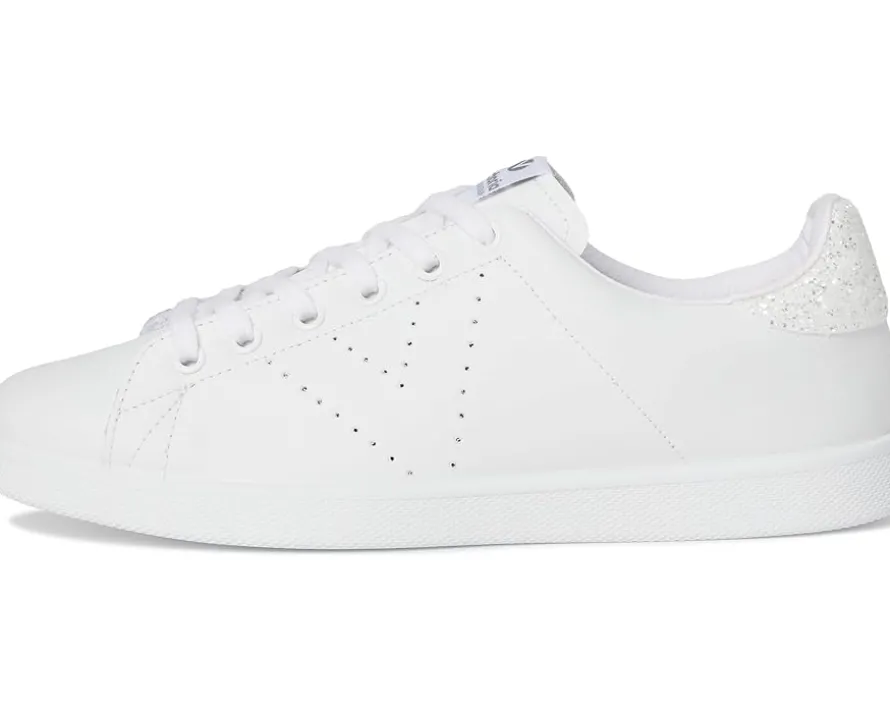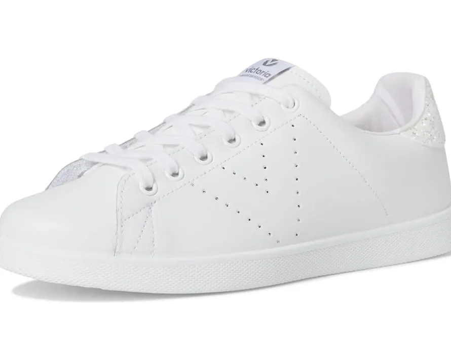 - Sleek and sporty, the victoria® Tenis Leather & Glitter Sneakers amp up your style game and offer next-level comfort. The low-top sneakers feature a leather upper with a rounded toe shape, cotton lining, and a cotton-covered comfort foam insole. The style comes with a classic V detail on the side panel and the organic cotton laces ensures easy adjustability.