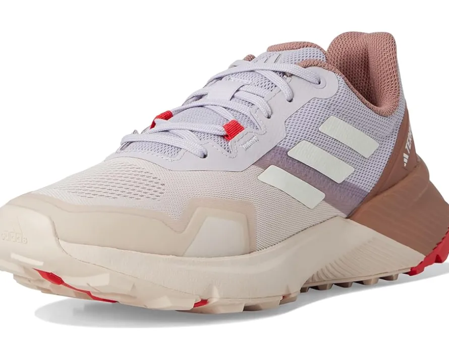 - Run from your front door to dirt trails and back again. Helping extend your adventure beyond the pavement, these adidas® trail running shoes come packed with comfort. An EVA midsole provides lightweight cushioning no matter how many miles you run, and an engineered mesh upper offers breathability and support. The Traxion outsole gives you maximum grip on uneven terrain. Made with a series of recycled materials, this upper features at least 50% recycled content. This product represents just one of our solutions to help end plastic waste.