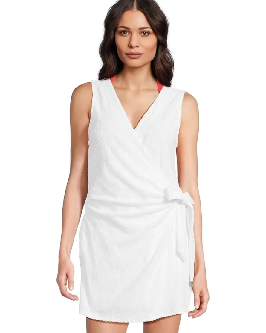 - Layer up your swimwear with the luxuriously soft and pretty Tommy Bahama® Textured Spa Terry Romper. The romper dress features a V-neckline, sleeveless design, tie-up detail at the waist, and an above-the-knee length silhouette.