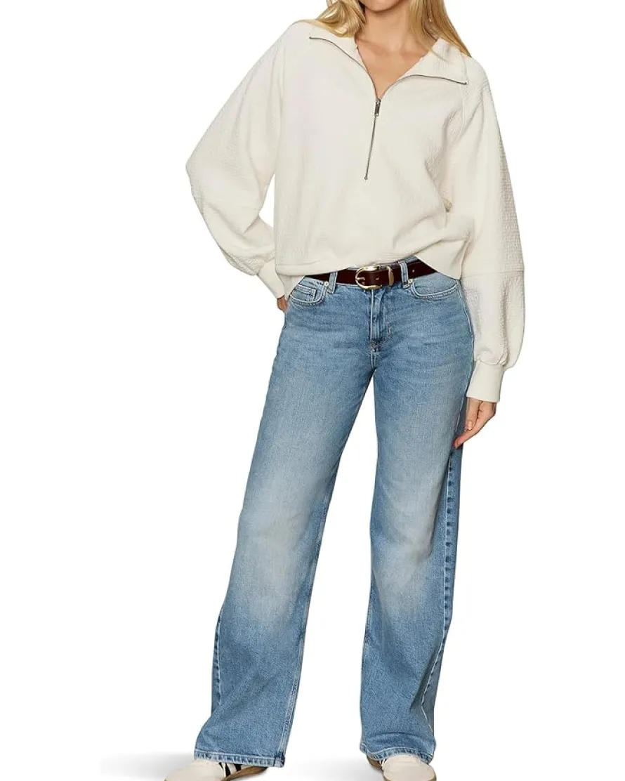 - Instant wardrobe refresh, Sanctuary™ Textured Zip Up Popover. Crafted for a classic fit, this pullover effortlessly blends comfort with modern flair. Its collared neck with a half-zippered placket adds a polished touch, letting you adjust your look from casual to chic in seconds. Long sleeves with ribbed cuffs ensure warmth and a secure fit, while the pull-on design makes it an easy go-to piece for busy mornings or relaxed weekends. The textured fabric adds subtle visual interest, making it perfect for layering over tees or under jackets.