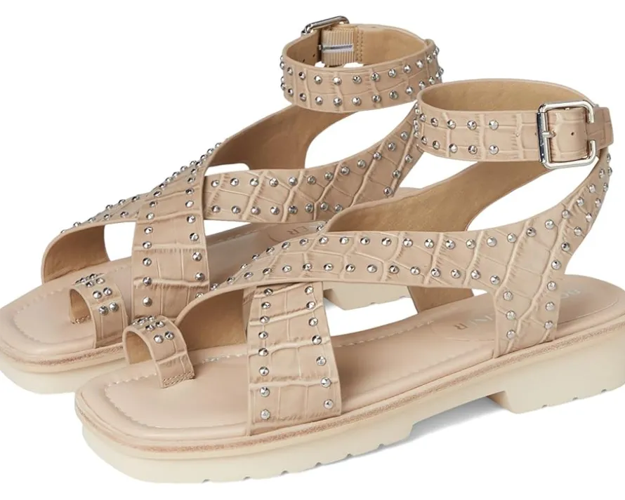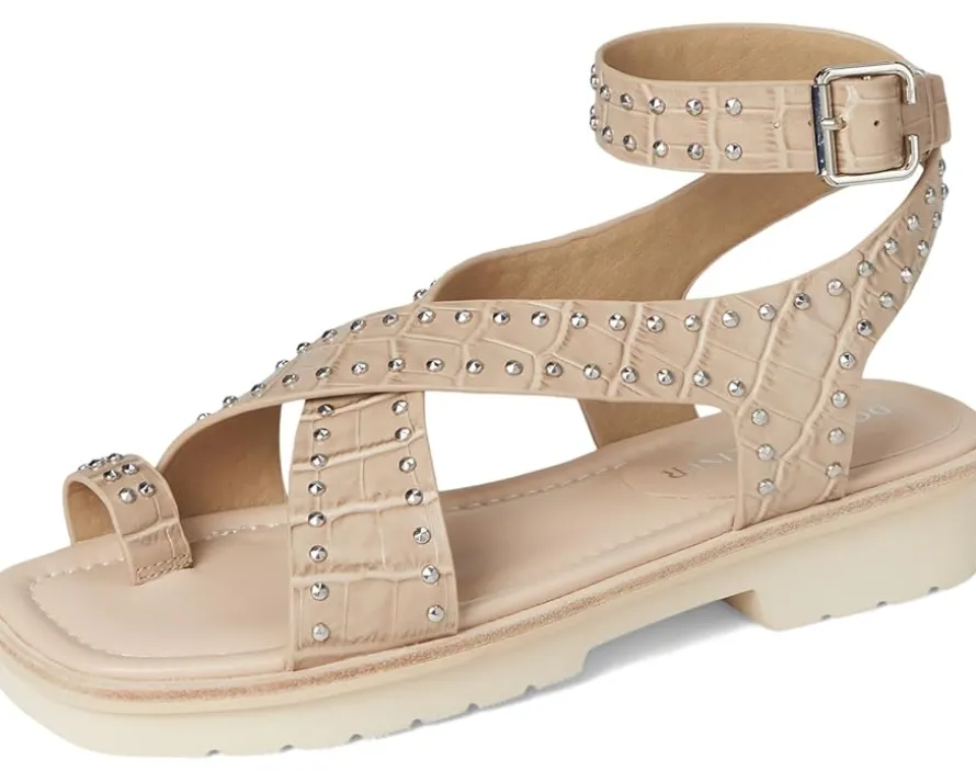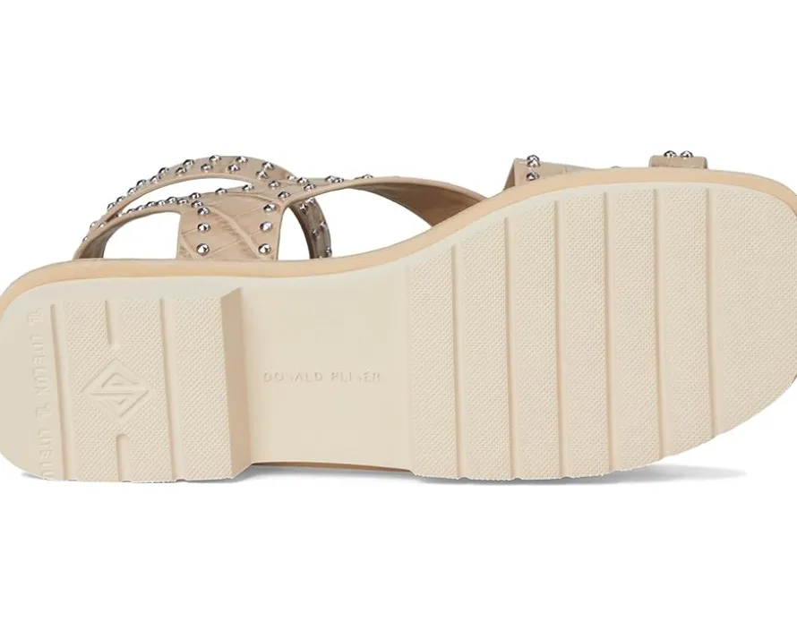 - Step in style with the Donald Pliner® Thalita lug-sole sandal in a croco embossed leather upper. This square toe style features a multi-strap upper with an adjustable buckle closure on the ankle strap and a toe ring adorned with metal studs. With a padded insole, this sandal is sure to keep you comfortable all day.