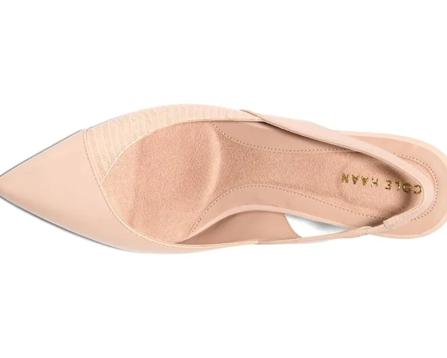 - Step into chic comfort styling Cole Haan® Go-To Slingback Pump 65MM. Featuring a sleek V-topline shape, stitch details, and leather upper for timeless elegance. But what sets it apart? The superfoam molded footbed ensures every step is cushioned and custom-fit, while the textile lined and PU outsole offer a lightweight feel with unmatched grip and flexibility.