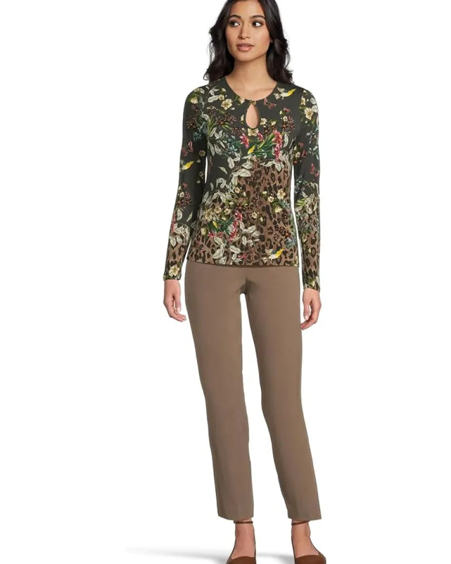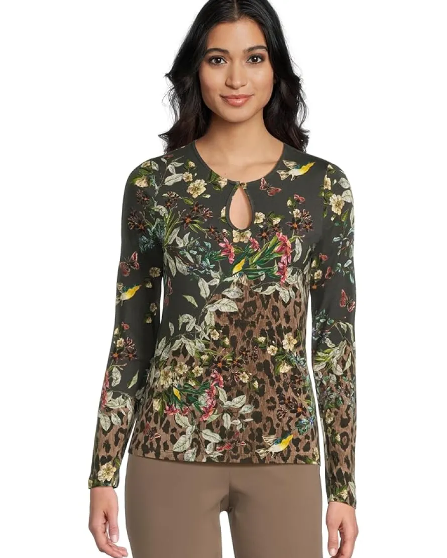- The Johnny Was® The Janie Favorite Keyhole Top is adorned with a bold combination of florals and animal print that makes it a fashionable apparel. Featuring a keyhole neckline and long sleeves, this bold pull-on style top is finished with a relaxed bodice for an easy fit.