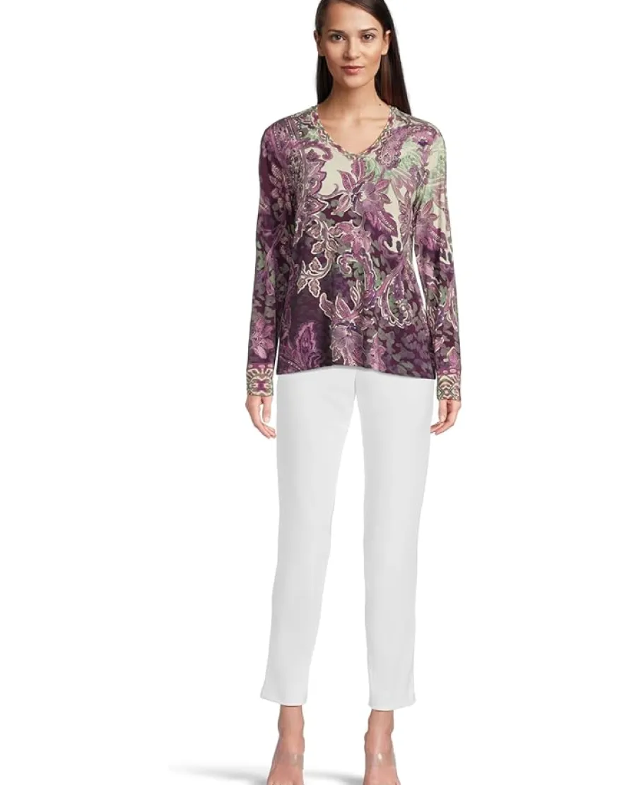 - Stay effortlessly stylish by wearing the Johnny Was® The Janie Favorite Long Sleeve V-Neck Tee. Its classic design features a flattering V-neckline, long sleeves, and a subtle flare at the hem, adding a feminine touch to your look.