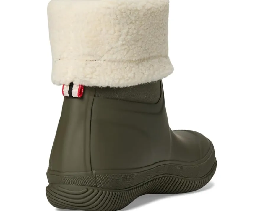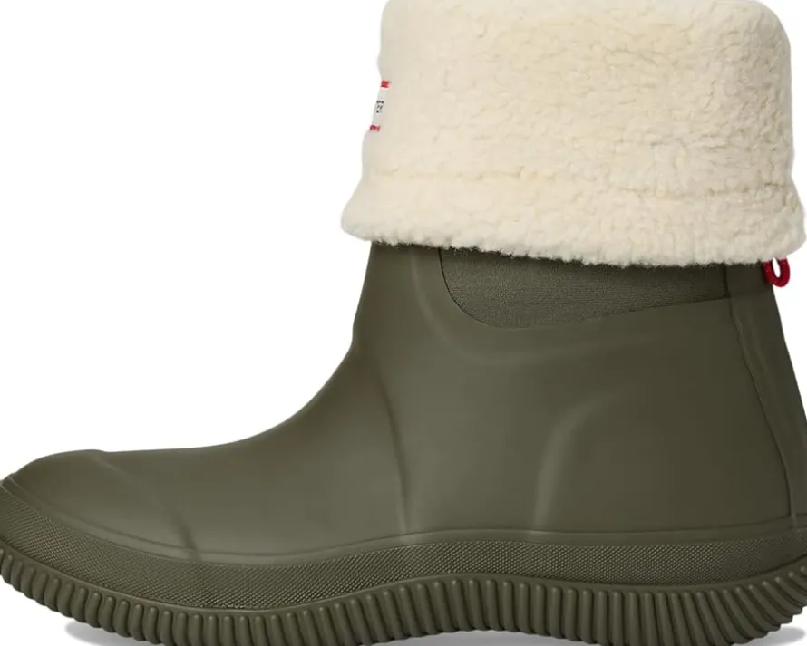 - Step into style donning the Hunter® Thunor-where fashion meets function! These Women’s Waterproof Mid Shaft Sherpa Roll Top Boots boast a chic rubber upper and outsole, ensuring you stay dry and stylish in any weather. Featuring a cozy polyester lining and insole, these boots provide all-day comfort, while the closed-toe design adds a touch of sophistication. The mid-calf height offers versatile styling options, making them perfect for both city streets and outdoor adventures. With a convenient pull-on design, the Hunter Thunor is your go-to boot for effortlessly elevating any outfit while keeping your feet warm and protected.