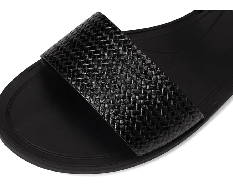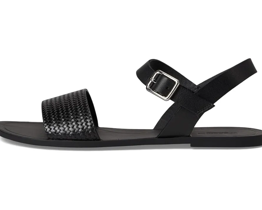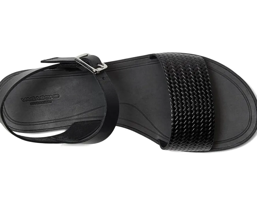 - The Vagabond Shoemakers® Tia 2.0 Woven Sandals are everyday flat sandals with a casual look. The style is crafted in black leather featuring wide woven straps across the upper, an open round toe shape, and an adjustable ankle strap with buckle fastening. These flat sandals are designed with a leather insole and lining, offering superior comfort and durability.