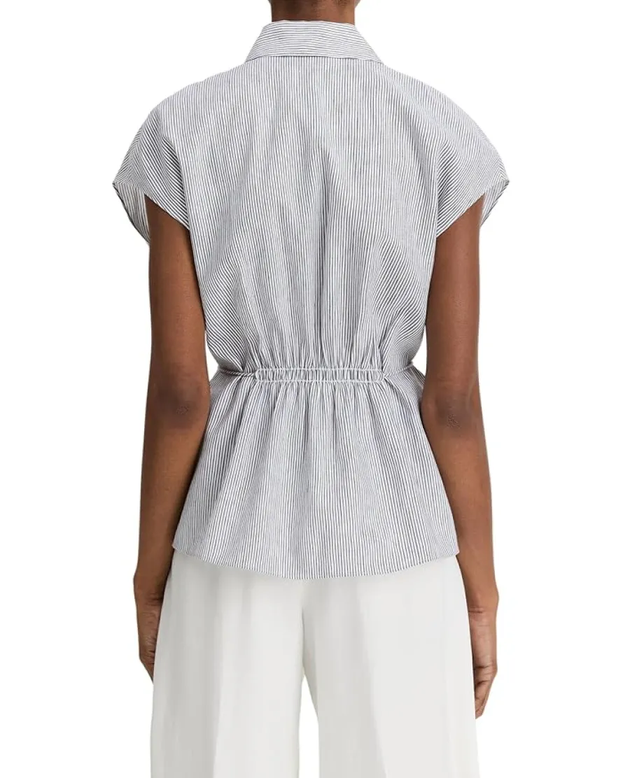 - The Vince® Ticking Stripe Cap Sleeve Blouse is crafted from ticking stripe linen-cotton for a lightweight, breathable feel. A surprise smocked detail at the back is complete with slender self-ties.