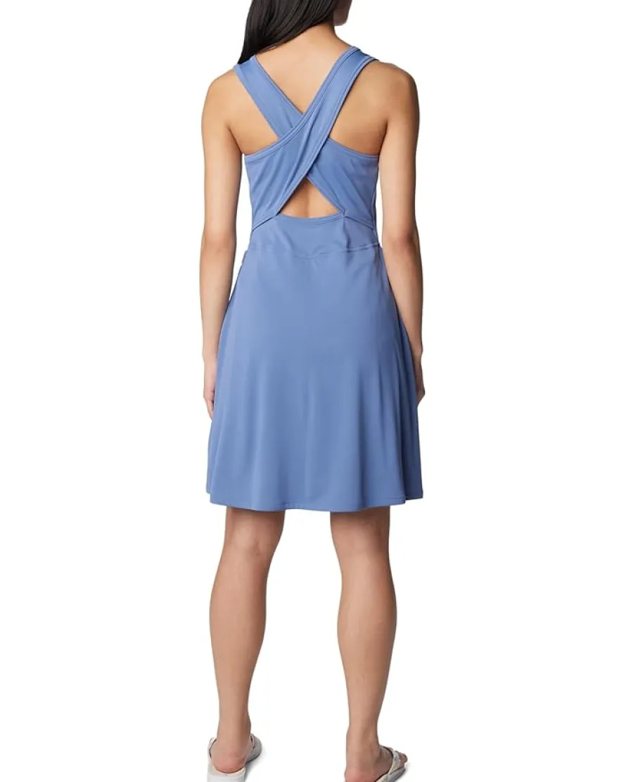 - Discover the perfect look that speaks volumes about your fashion-sense donning the Columbia® Tidal™ Dress. The above-knee-length dress features Omni-Shade™ Broad Spectrum UPF 50 technology, built-in interior short for an active fit, and sleeveless construction with crisscross back detailing. It is crafted from Omni-Wick™ fabric that keeps you dry and cool by pulling moisture