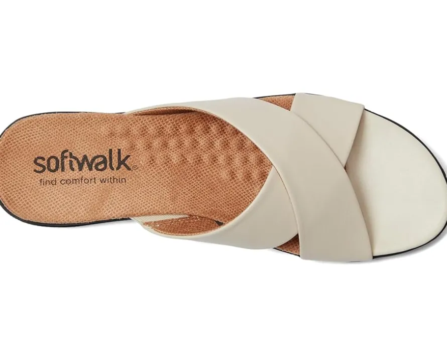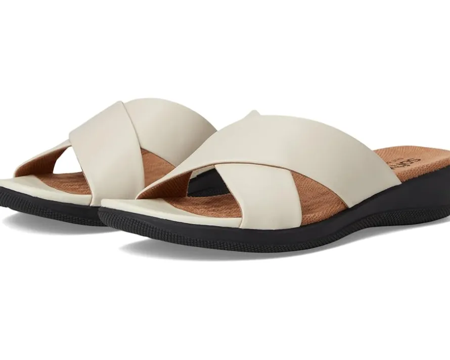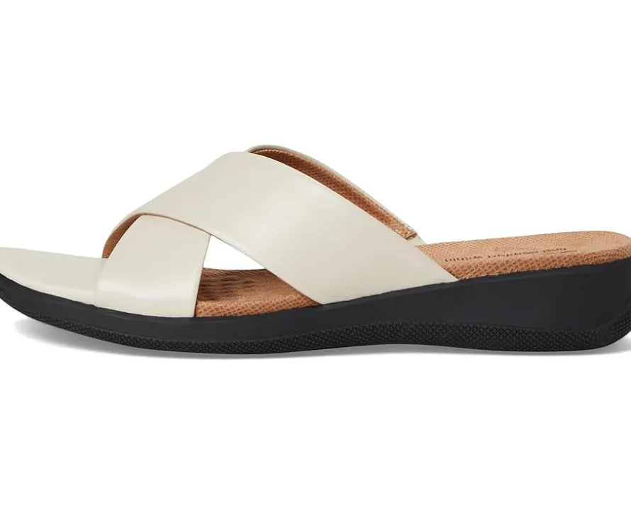 - Genuine leather upper features an open toe with crisscrossing straps.
