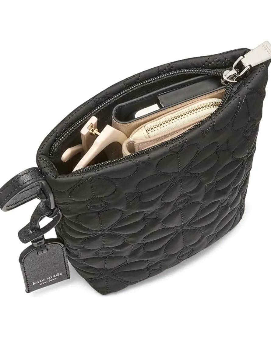 - The Kate Spade New York® Tilly Quilted Fabric Small Crossbody features a matte quilted finish that adds texture and durability. It includes a zippered top closure and an exterior slip pocket for organized storage. The adjustable strap allows for comfortable crossbody wear.