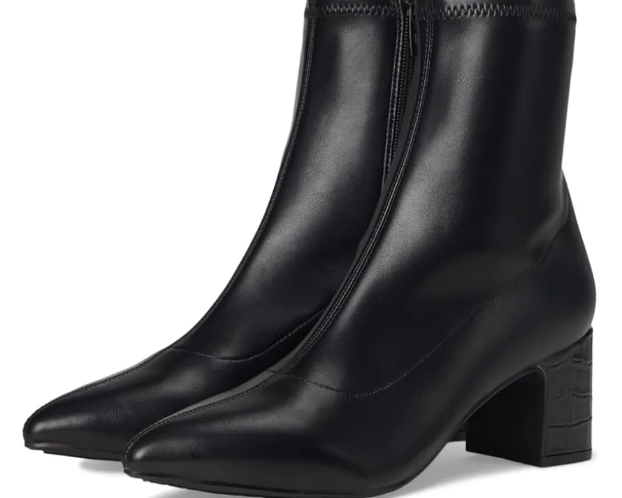 - Step into luxury with the Donald Pliner® Tomos Stretch Ankle Bootie, beautifully detailed with a sleek pointed toe to add elegance to any outfit. The ankle-high boots come with a suede upper and memory foam-padded insole. The stretch shaft, discreet inner zipper closure, and a block heel wrapped in embossed leather offer added texture and contrast.