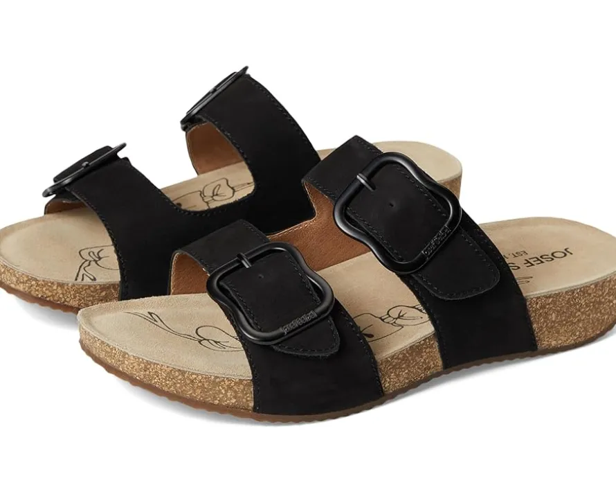 - Beyond fleeting trends wearing Josef Seibel® Tonga 64. Crafted with a durable rubber upper and outsole for all-day wear, it features a luxe leather-lined upper and a contoured, suede-lined footbed that cradles your feet in softness. Two hook-and-loop adjustable straps, including two across the top, offer a personalized fit that moves with you. The cork-latex midsole delivers lightweight cushioning, while the TPU outsole ensures secure grip and flexible movement. With a breathable leather lining and a comfy polyester insole, it’s designed to keep up with your every step.