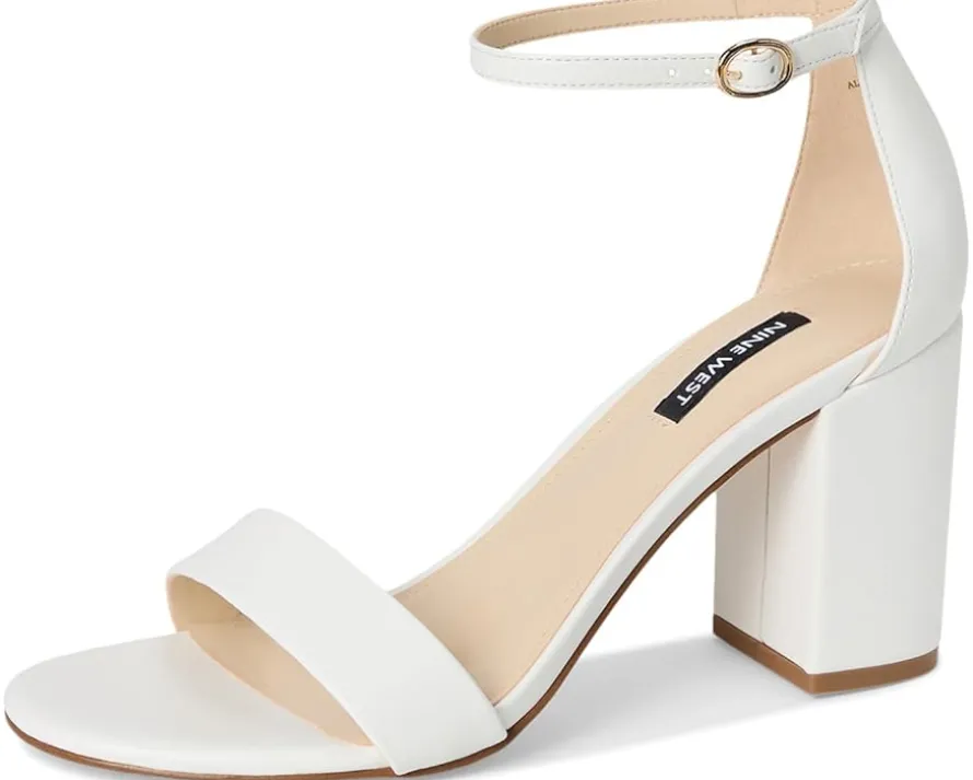 - From your party dresses to formal outfits, the Nine West® Toniann sandals work for different occasions. The faux leather upper features an ankle strap with an adjustable buckle closure for a perfect fit. These heeled sandals are made of a cushioned footbed and polyurethane lining, making them comfortable to wear for long hours.