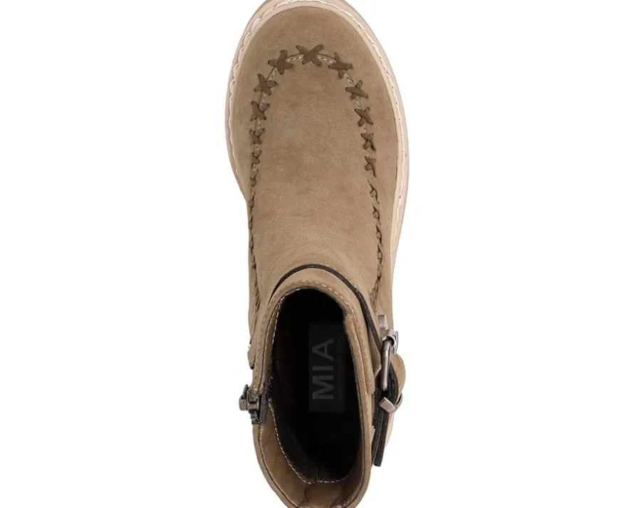 - Elevate your style with the TOULA. This modern boot is crafted from faux suede material and features a buckle accent detail and a zipper closure along the shaft. Finished on a platform lug sole with a stacked 2.7-inch platform heel.