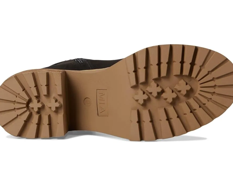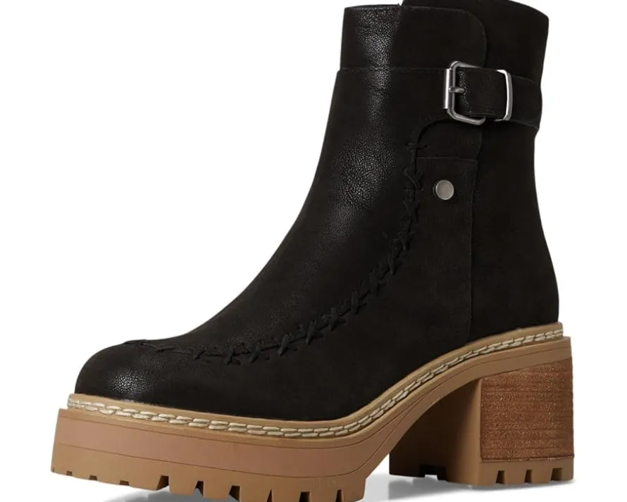 - Elevate your style with the TOULA. This modern boot is crafted from faux suede material and features a buckle accent detail and a zipper closure along the shaft. Finished on a platform lug sole with a stacked 2.7-inch platform heel.