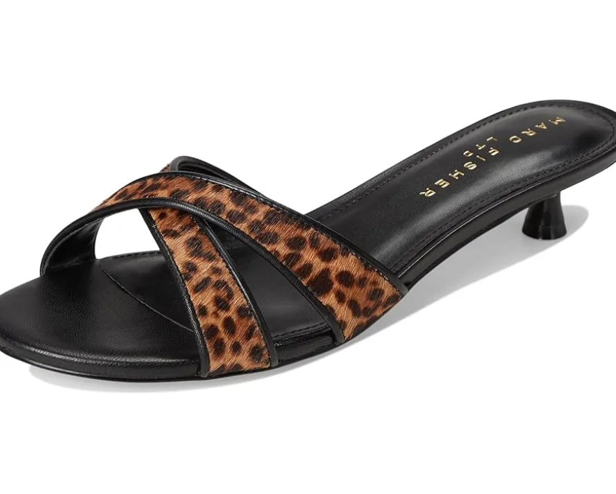 - The Marc Fisher LTD™ Traceyly dress sandal is a fashion forward must-have for the season. Featuring a slip-on silhouette, a kitten heel and leopard patterned crisscross straps, this sandal will never go out of style! These are crafted with a hair calf or leather upper and man-made lining.