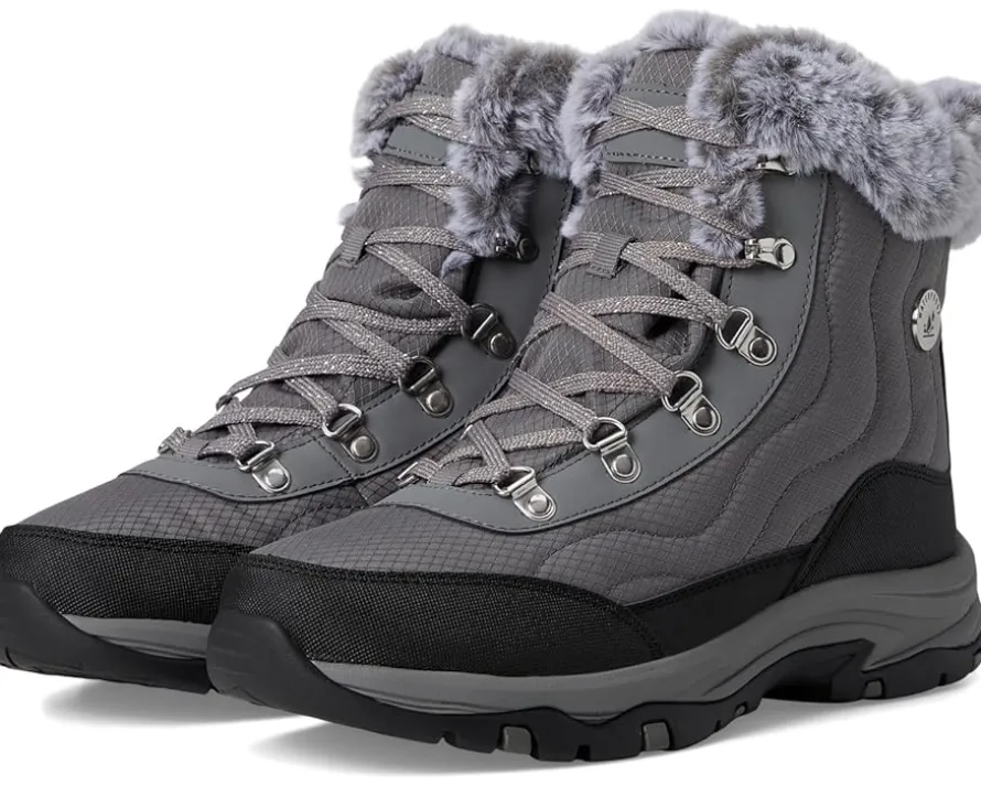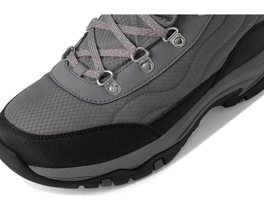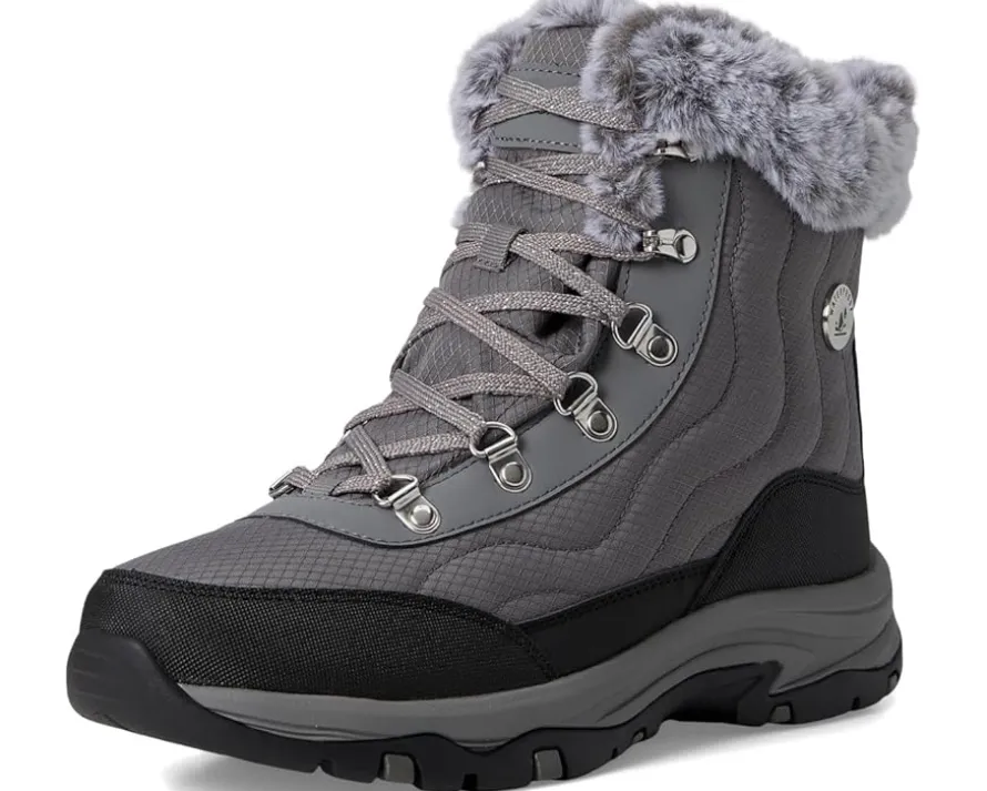- Keep it cozy this season in rugged comfort wearing the SKECHERS® Trego – Stormie. The lace-up hiking boots feature waterproof synthetic and mesh upper, faux-fur lined trim and Skechers Air-Cooled Memory Foam® cushioned comfort insole. The ankle-high shoes have fabric lining, waterproof seam-sealed design, and round toe design.