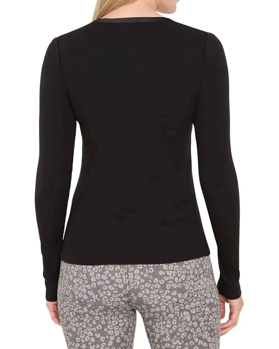 - The NIC+ZOE™ Trimmed Perfect Knit Rib V-neck Top takes a beloved wardrobe staple and adds a refined twist. Based on their bestselling ribbed knit silhouette, this version features a sleek Day Gloss trim that brings subtle shine and elevated detail to the neckline. The soft, stretchy fabric offers comfort and versatility, making it ideal for layering or wearing solo. With its flattering V-neck and polished finish, this top transitions effortlessly from casual to dressy.
