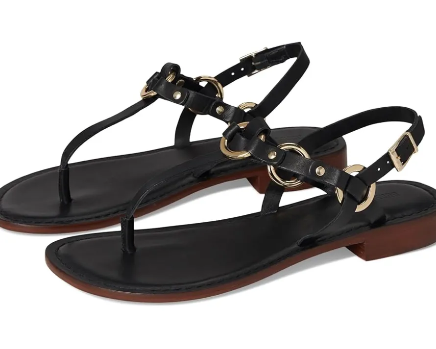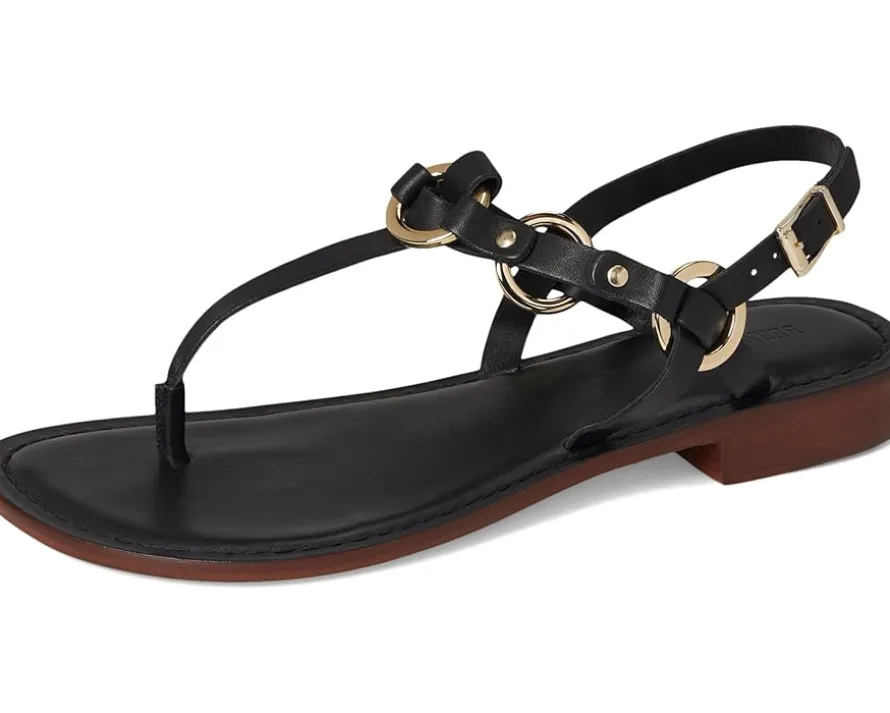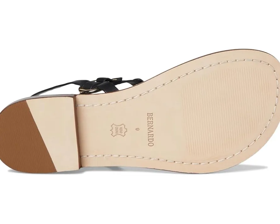 - Exhibit fashion-forward imagination with the Bernardo® Tuni T-strap sandal. Pairing modern leather upper straps with geometric hardware and a covered block heel, it proves that comfort and polish can coexist.
